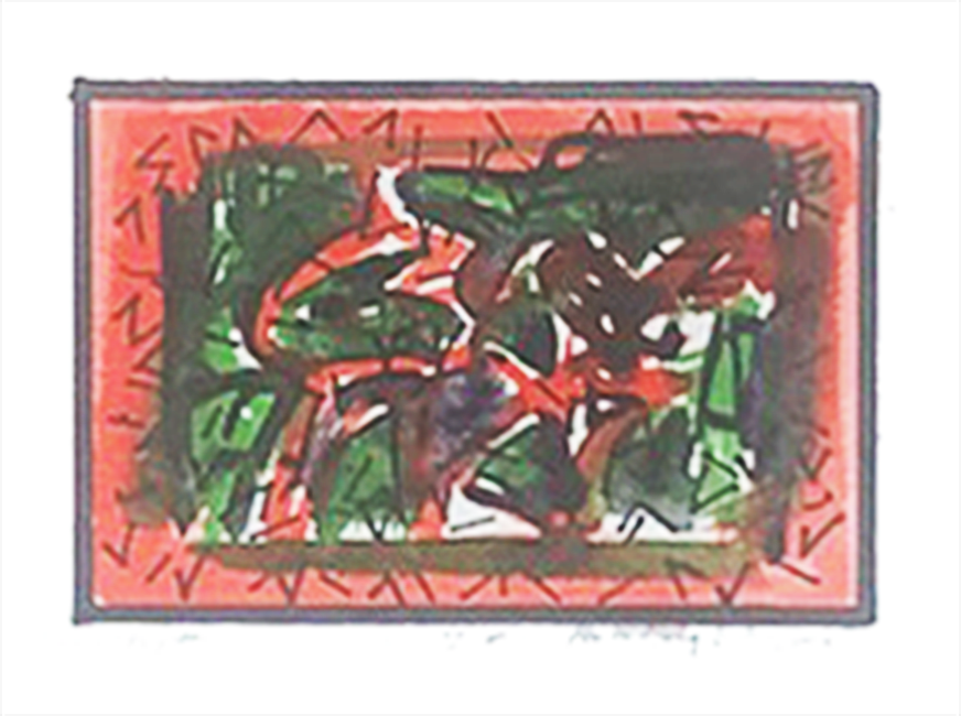 Toynton made crayon drawings throughout his life, as well as many watercolours, a number of which were done during extended stays on the island of Paros, in Greece. He also created series of lithographs and monotypes, painting by hand on the latter after they were printed.